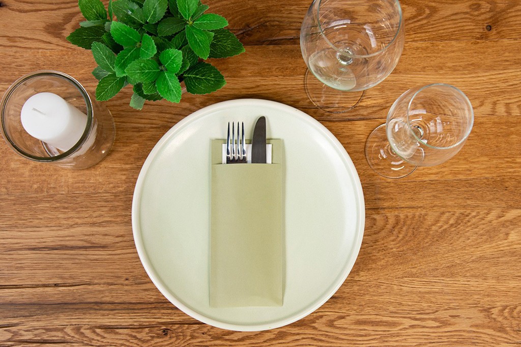 Papier + Tissue Bestecktasche Basic oliv